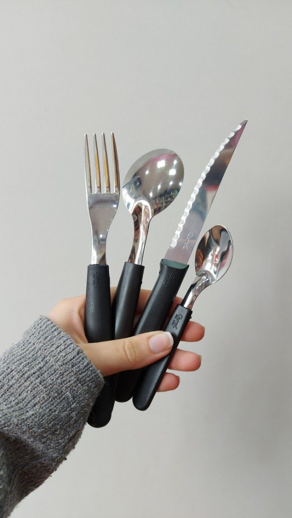 6 tenedores, 6 cuchillos, 6 cuchara sopera y 6 cucharas de te
