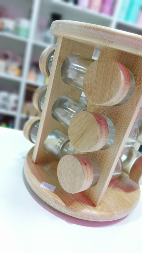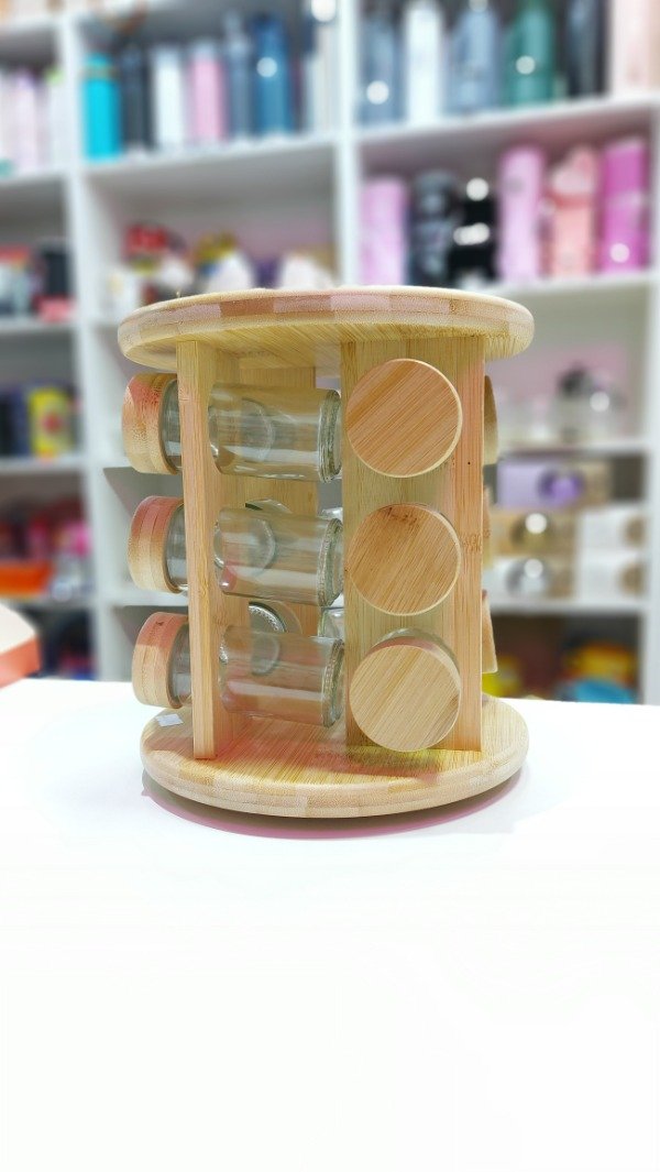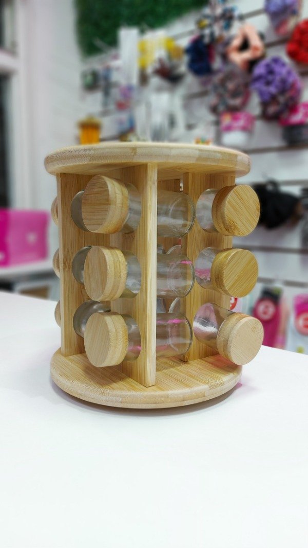 Especiero giratorio de Bambú con frascos de vidrio