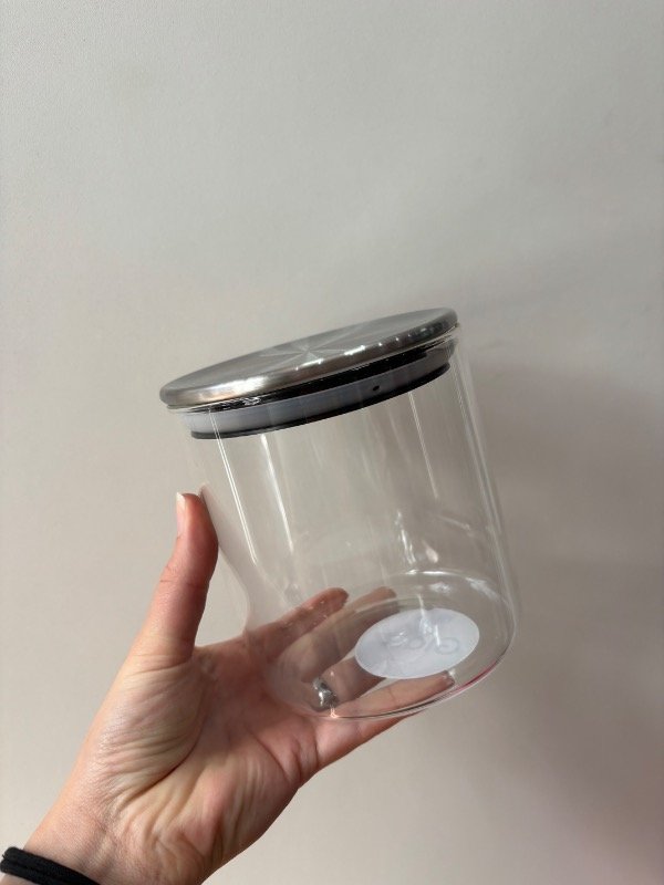 Frasco de vidrio con tapa hermética de acero inoxidable