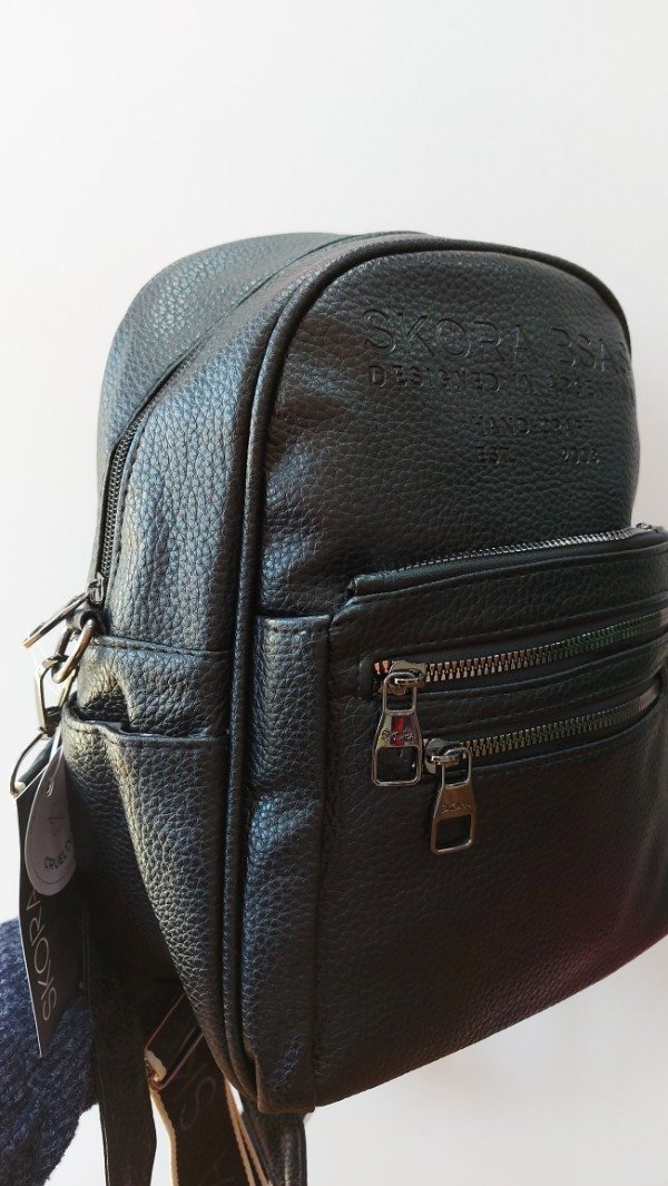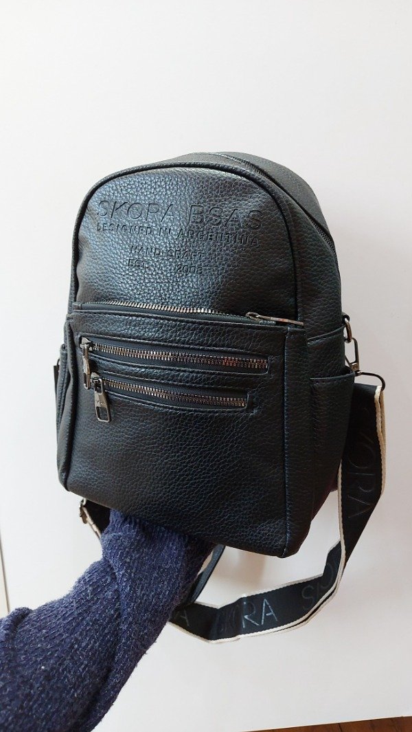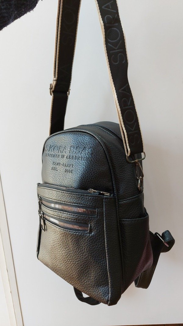 Mochila tamaño pequeño marca Skora, de eco cuero.