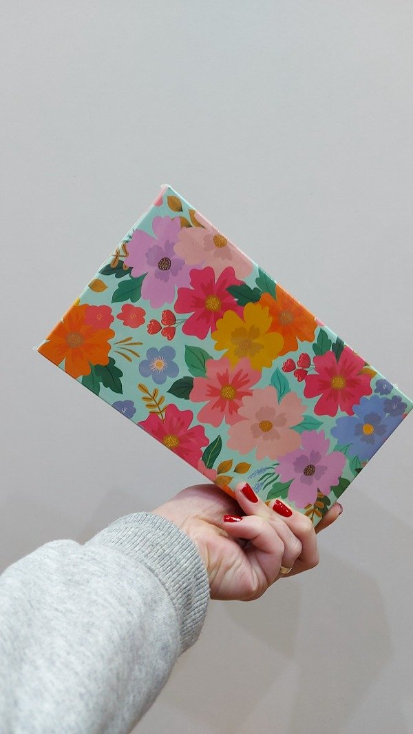 Set con estampa florcitas que incluye tacos de hojas y un lápiz