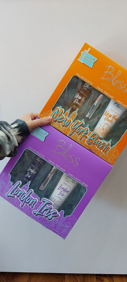 Set que incluye perfumero de cartera + body splas + crema manos y cuerpo
