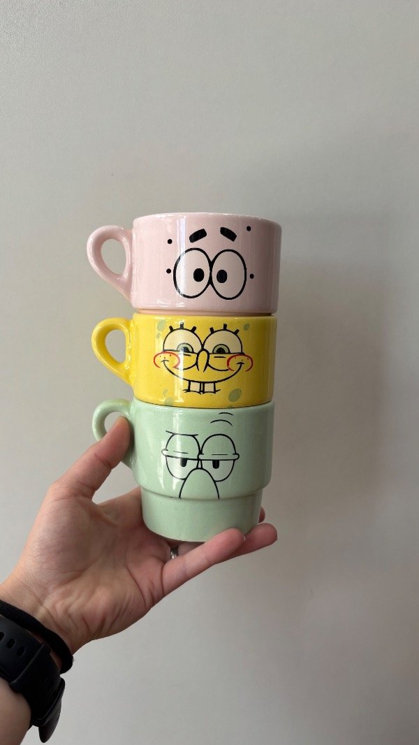 El set incluye las 3 tazas de cerámica que se apilan