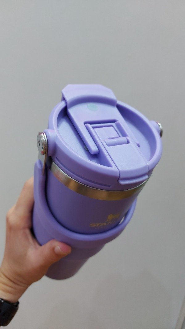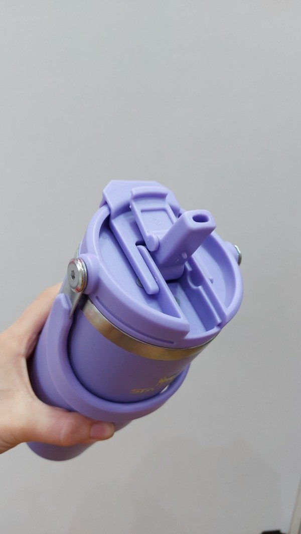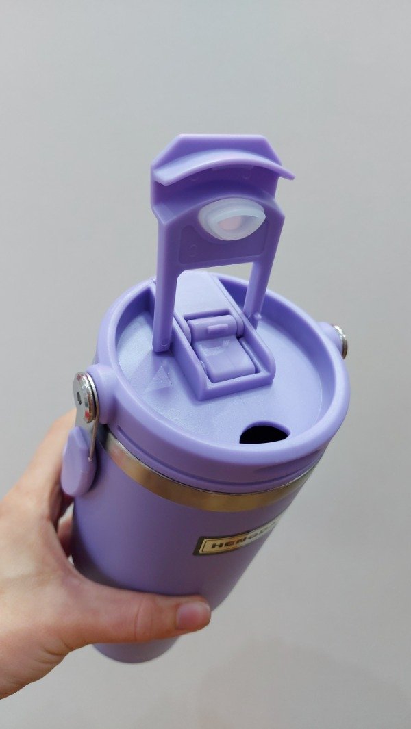 Con doble pico: uno es pico rebatible tipo flip straw y el otro es orificio (que obvio podes añadirme un sorbete o tomar directo asi).