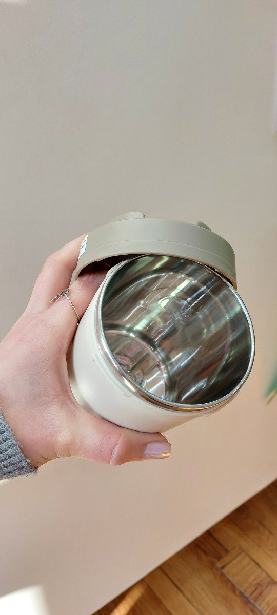 Vaso de material acero inoxidable por dentro, permite mantener temperatura de tu infusión